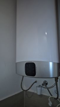 Egyedi víz-, gáz- és elektromos mérő óra, a melegvizet Ariston bojler, a fűtést gázkonvektor biztosítja.