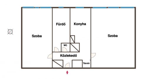 Két külön bejáratú szoba, előszoba, konyha, fürdőszoba és a WC külön helységben, kényelmes mozgásteret biztosít. Délkeleti fekvésének köszönhetően egész nap természetes fényben úsznák a szobák.