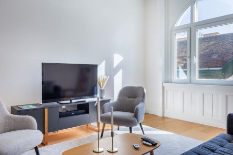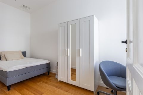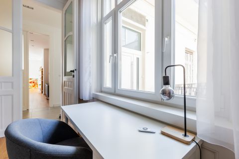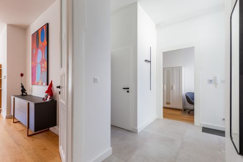 Az 53 nm-es amerikai konyhás nappali mellet a többi helyiség is rendkívül tágas, kényelmes, praktikusan kialakított. 3 hálószoba, 2 fürdőszoba, egy kézmosóval ellátott toalett, gardrób, háztartási helyiség és előszoba áll rendelkezésünkre.