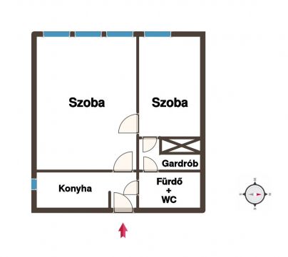 jelent. A fürdőszoba két irányból is megközelíthető, amely