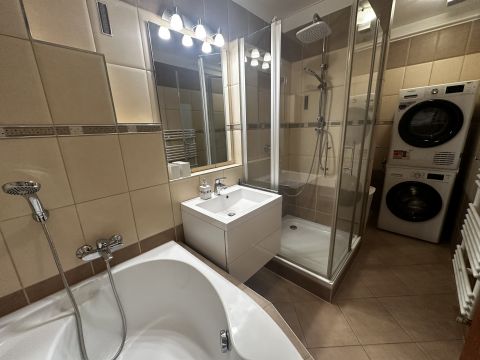 Háztartási gépekkel maximálisan ellátott: mosógép, szárítógép, hűtő, mélyhűtő, sütő, klíma, mikro, vízforraló.