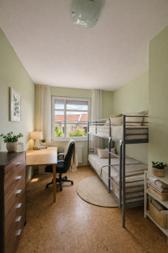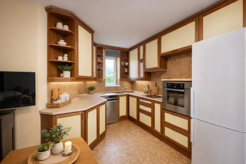 Az ingatlan belső tereit lakberendező tervei alapján alakították ki, az eredeti alaprajzot átgondoltan módosították. A vizes helyiségek kivételével parafa burkolat teremti meg a meleg, otthonos hangulatot. A keleti fekvésű hálószobák és a déli tájolású nappali miatt a lakást egész nap természetes fény járja át, télen is körbesüti a nap.