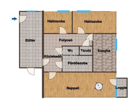 A lakás praktikus elosztású, minden helyiség külön nyíló, így ideális családoknak vagy pároknak is. A KDK-i tájolásnak köszönhetően a terek egész nap világosak és barátságosak. A lakás részben bútorozott, új konyhabútorral és garanciális gépekkel (villanytűzhely, hűtő, mikrohullámú sütő, mosógép) felszerelt. A két klímával rendelkező, parkettás szobák, valamint a külön fürdő és WC kényelmes, élhető otthont biztosítanak.