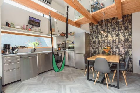 Ez az ingatlan messze túlmutat a megszokott lakások világán: kialakításának és atmoszférájának köszönhetően sokkal inkább egy intim, privát kertes ház élményét nyújtja. A lakás abszolút egyedi, karakteres megjelenésű, amely nem hasonlítható a piacon elérhető hagyományos ingatlanokhoz.
