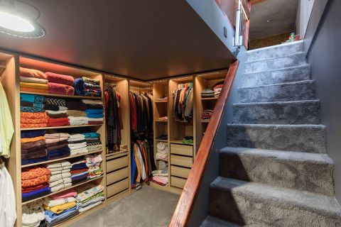 20 nm alagsor: egyedileg kialakított, beépített gardrób, bőséges tárolási lehetőségekkel