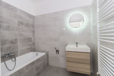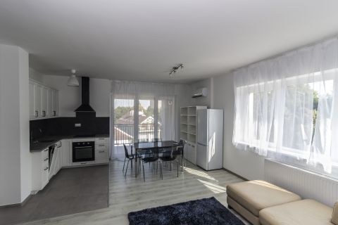 2023-ban átadott modern épületben kiadó egy jó beosztású, nappali + 1 szobás, fedett teraszos, klímával felszerelt, szép, modern lakás bútorozott állapotban, saját autóbeállóval, alacsony rezsivel!