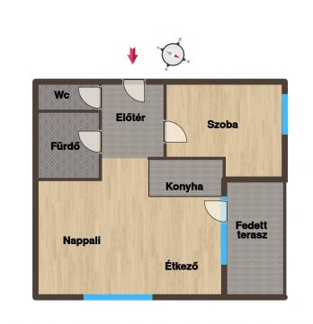 Az ingatlan második emeleti, alapterülete 55,4 nm + 7,45 nm fedett terasz tartozik hozzá..