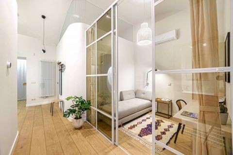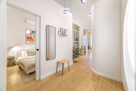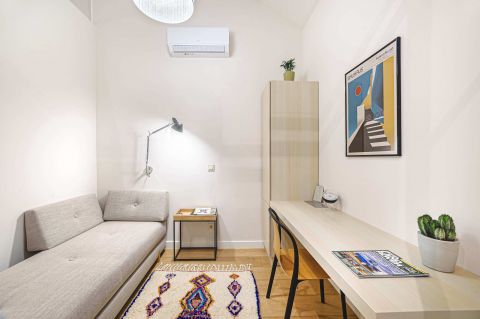 A lakás kényelmét elektromos redőnyök, hűtő-fűtő klíma, magas minőségű konyhagépekkel felszerelt konyha biztosítják. A minőségi fa parketta eleganciát és meghittséget sugároz az egész lakásban. Praktikus elrendezésének köszönhetően ideális választás pároknak, kisebb családnak vagy két hálószobát igénylőknek.