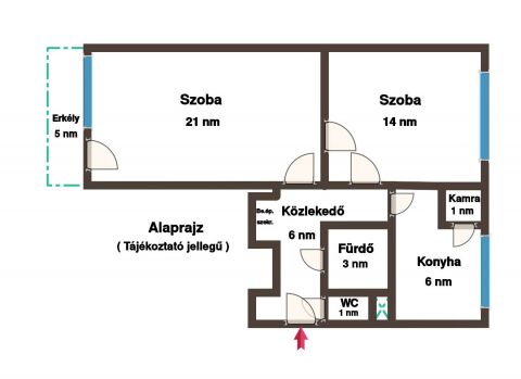- két szobát ( 21 és 14 nm)