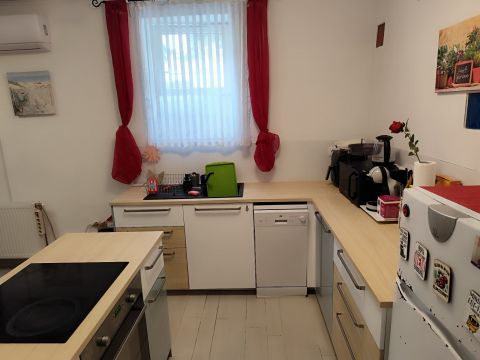 A konyha egy éve teljes körű felújításon esett át, amerikai konyhás nappali került kialakításra, amely modern, élhető közösségi teret biztosít.