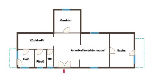 A lakás teljeskörűen felújított, világos, K - Ny-i fekvésű, áll ~ amerikai konyhás nappali, 2 szoba, gardrób, fürdő wc-vel, wc, 2 db erkély, közlekedő helyiségekből.