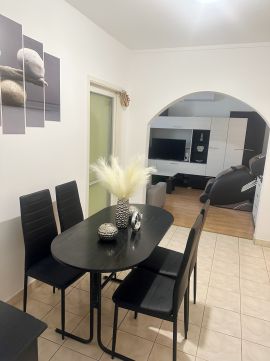 Árkád Bevásárlóközpont közelében eladó, egy jó állapotú, 71 nm-es, 3 szobás + 4 nm erkéllyel rendelkező, 6.emeleti, parkra néző panel lakás. Az épület részt vett a panelprogramban, hőszigetelt homlokzattal rendelkezik. Fűtése távfűtés egyedi méréssel, a hűtésről nagy teljesítményű Nord típusú hűtő- fűtő klímaberendezés gondoskodik. A lakás egyedi kialakítású, az egybenyitott erkélyes nappali és az étkező nagy világos teret eredményez. A fürdő - WC külön helyiségben található, a fürdőszoba sarokkáddal felszerelt. A praktikumot növeli a gardrób helyiség, amelyben a tároláson felül helyet kapott még a mosógép, így ez nem a fürdőszobából vesz el helyet. A biztonságról 5 ponton záródó acél lemezes bejárati ajtó gondoskodik, plusz biztonsági hevederrel megerősítve. A közvetlen közelben található Árkád és Sugár üzletközpontok a napi bevásárláson túl, széles körű gasztronómiai és szabadidős szolgáltatásokat is kínálnak. A kiváló infrastruktúrát az Örs vezér tere biztosítja, ahol számos közlekedési eszköz köztük az M2-es metró, a H8-as és H9-es HÉV, valamint számos busz- és villamosvonal garantálja a gyors és kényelmes közlekedést a város minden irányába.