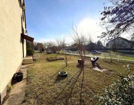 Kertkapcsolatos téglaépítésű lakás, melyhez egy zárt udvari autóbeálló is tartozik!
