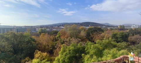 - elvehetetlen, a budai hegyekre és a Vérmezőre tekintő örökpanorámája mindhárom nagy szobából és az erkélyről is élvezhető