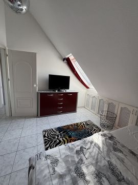 Tatán, közvetlenül az Angolpark szomszédságában, műemléki és természetvédelmi környezetben kiadó egy igényesen berendezett, belső két szintes, amerikai konyha + nappalis + 4 szobás, 126 nm-es lakás, maximum 6 fő részére.