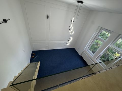 A ház egy csendes, zöldövezeti utcában található, mindössze 5 perc sétára a Dunától, így a természet közelsége és a városi kényelem egyszerre adott.