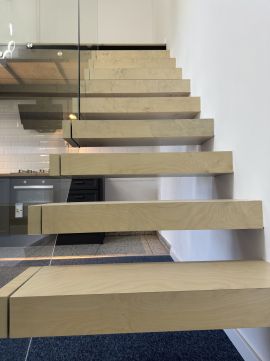 A lakáshoz tartozik egy autóbeálló és egy 14 m²-es, különálló tároló is.