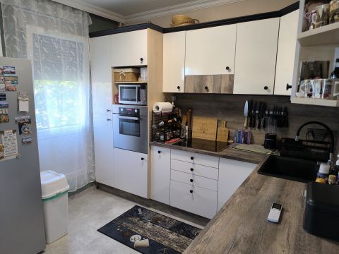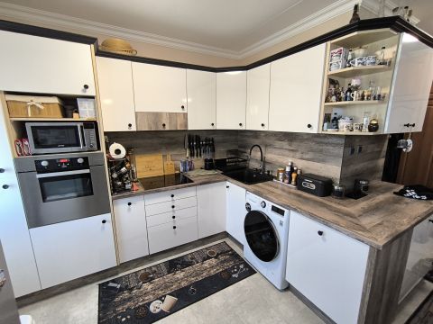 A konyha és a félszoba közötti válaszfal bontását követően egy nagy, 16 m2- es konyha - étkező lett kialakítva, modern bútorral, indukciós főzőlap + sütő és mosogatógép is van.