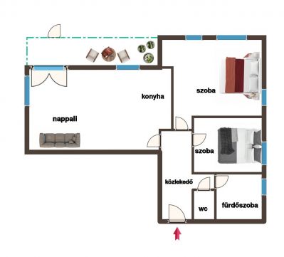 - amerikai konyhás nappali+ 2 különnyíló hálószoba