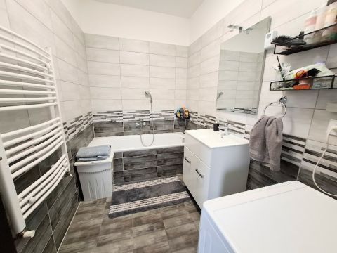 Szigetszentmártonban sorházi lakás eladó, saját közvetlen kertkapcsolattal, gépkocsi beálllóval.