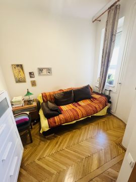 A XIII. kerület szívében, Újlipótvárosban, a Balzac utca egyik legszebb épületében kínálunk eladásra egy 107 m²-es, nappali + 3 hálószobás, 2 fürdőszobás, jó állapotú, klimatizált, cirkófűtéses, két erkélyes, 5. emeleti lakást, rendezett, liftes társasházban.