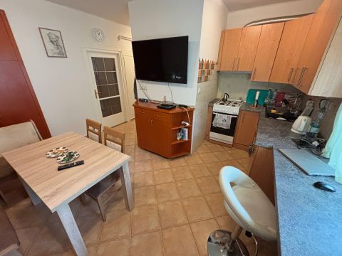 A közlekedő egy tágas (18,5 m2) konyha-étkezőbe vezet, innen nyílik a két külön bejáratú szoba, valamint a fürdő és a külön wc is. A korszerű, hőszigetelt műanyag ablakok redőnnyel és rovarhálóval is fel vannak szerelve, a bejárati, több ponton záródó biztonsági ajtó. A lakás fenntartási költségei szolidak a fűtést és a meleg vizet egyedi gázcirkó kazán biztosítja, a havi gáz számla mindössze 7000 Ft. A vételár a teljes bútorzatot tartalmazza, az ingatlan gyorsan birtokba vehető, tehermentes. A lakáshoz tartozik 4 m2 saját pince az alagsorban, a ház környékén a parkolás ingyenesen megoldott...
