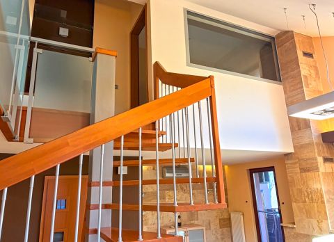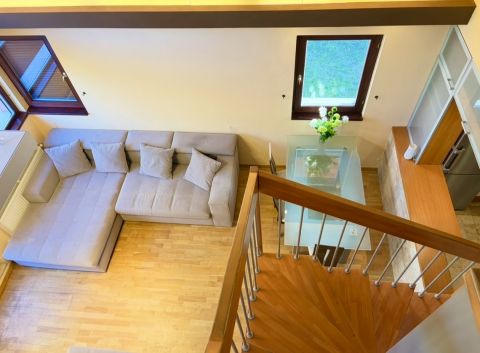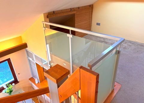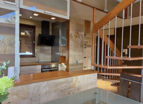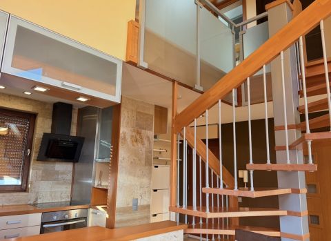 A nappali parkettás, míg a galéria szőnyegezett, ami meleg, otthonos érzetet biztosít.