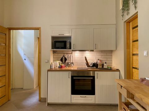 Rákóczi tér közelében, a Mária utcában eladó egy 47 m2-es, földszinti lakás, amelyben két különálló appartman lett kialakítva.