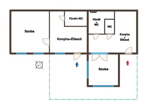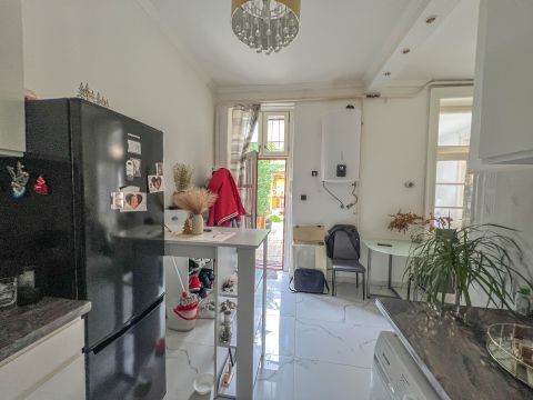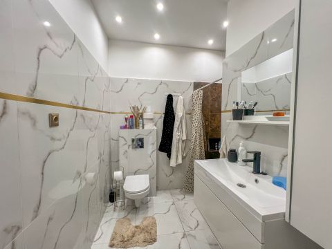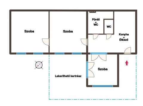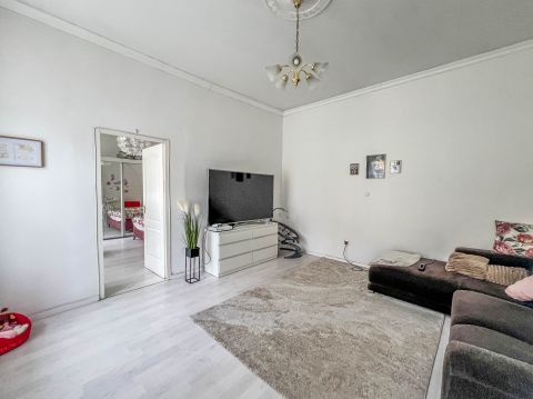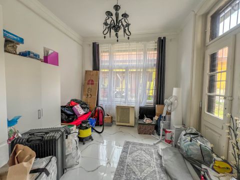 Az ingatlan elosztása kiváló, áll 3 szobából, egy étkezős konyhából, fürdő+WC-ből, valamint egy külön WC-ből. A lakáshoz tartozik egy 15 nm nagyságú, zárható pincehelyiség, valamint a lakás előtti kb. 20 nm nagyságú udvarrész le is keríthető. A fűtésről gázkonvektorok, a meleg víz ellátásról villanybojler gondoskodik. A fürdőben és a WC-ben páraelszívó, a konyhában szagelszívó működik. A lakást nagy belmagasság, magas nyílászárók és jó fényviszonyok jellemzik.