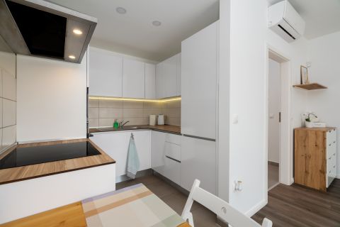 Teljesen felszerelt: Minőségi bútorokkal és gépesített konyhával várja első lakóját.