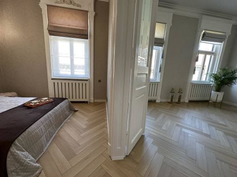 The apartment is located on the top floor. 3.7 m interior height. This year, it underwent a complete technical and aesthetic renovation.