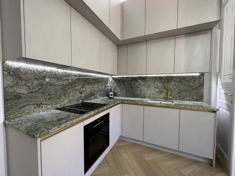 Tulajdonos kifinomult ízlését tükrözi minden négyzetcentiméter, melyből nem sajnálta a legnívósabb anyagok felhasználását. Mint: Elie Saab tapéta, Livolo érintőkapcsolók, beépített hangszórók. Lemon Ice gránit konyhai munkafelület, Aparici spanyol porcelán burkolatok, magas minőségű Bosch és Samsung háztartási gépek. Designer csillárok, fűtőtestek. Egyéb különlegességek! A bútorok és berendezések a lakással együtt kerülnek eladásra, mely az ingatlan vételárán kívül: 25.000 Euro