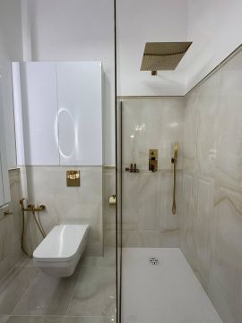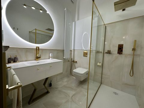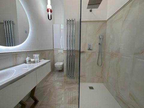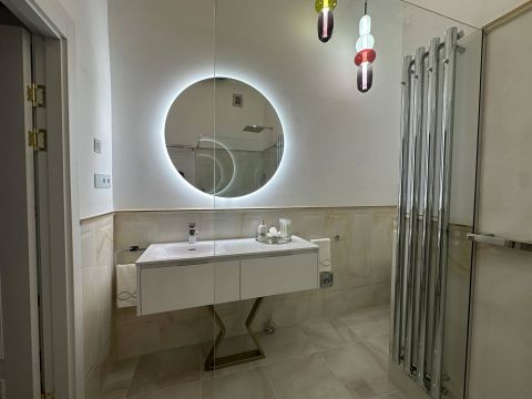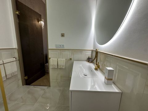 Every square centimeter reflects the refined taste of the owner, of which She did not regret the use of the highest quality materials. Like: Elie Saab wallpaper, Livolo touch switches, built-in speakers. Lemon Ice granite kitchen work surface, Aparici Spanish porcelain tiles, high-quality B The furniture and equipment are sold together with the apartment, which is in addition to the purchase price of the property: 25,000 Euroosch and Samsung household appliances. Designer chandeliers, heaters. Other specialties!