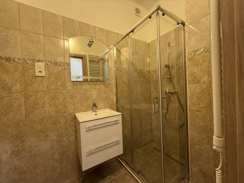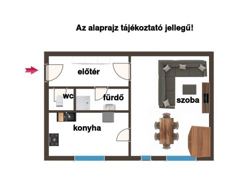 -Előtér, önálló WC, zuhanyzós fürdőszoba, konyha, étkező és nappali szoba -