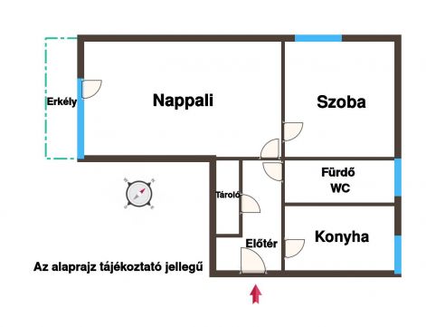 Az ingatlan magasföldszinti, utcai nézetű, délnyugati tájolásának köszönhetően kifejezetten világos és barátságos.