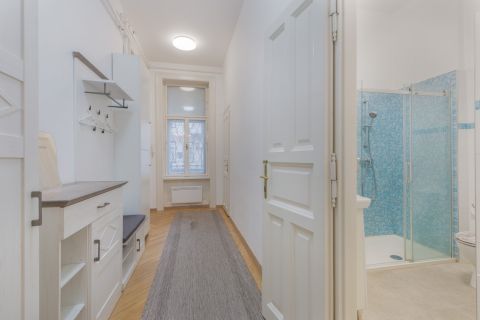 For sale is a 67 sqm, beautifully renovated apartment located on the 2nd floor of a well-maintained brick building in Budapests 7th District, Hernád Street. The apartment is bright and spacious, featuring high ceilings and a pleasant, welcoming atmosphere. During the renovation, high-quality, durable materials were used throughout. Heating and cooling are provided by new gas convectors, NOBO electric heating panels, and a modern heatingcooling air-conditioning unit. Electric shutters add extra comfort, while the refurbished wooden doors and windows preserve the homes classic character. The rooms feature well-maintained wooden parquet flooring.