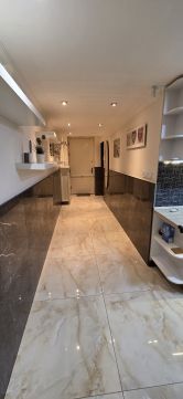 Alsó szinten található a tágas nappali, konyha, étkező együttes!