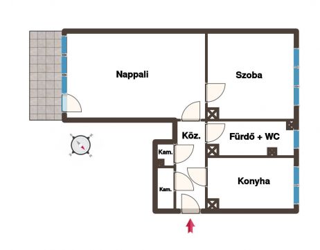 Az ingatlan gyakorlatilag egy festéssel költözhető, a szobák igazi parkettával, a többi