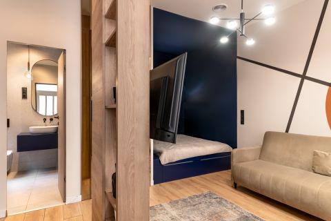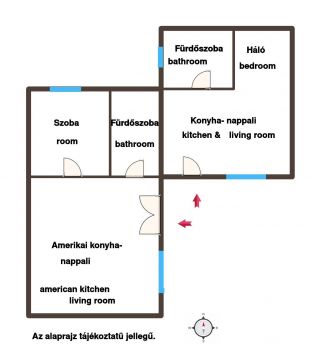 A külön bejárattal rendelkező, 24 nm-es stúdiólakás konyha-nappali hálófülkéből, zuhanyzós fürdőszobából áll.