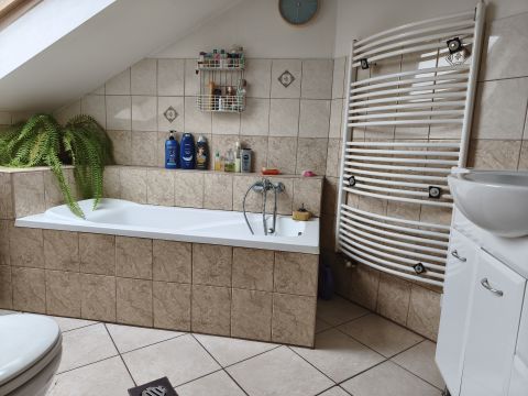 nagy, ablakos, kádas fürdőszoba WC-vel