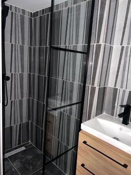 Praktikus konyhasarok és zuhanyzós fürdőszoba