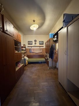 Mindkét szoba parkettázott, a többi helyiségben átlagos állapotú a hidegburkolat.