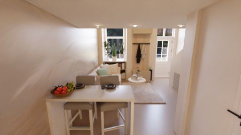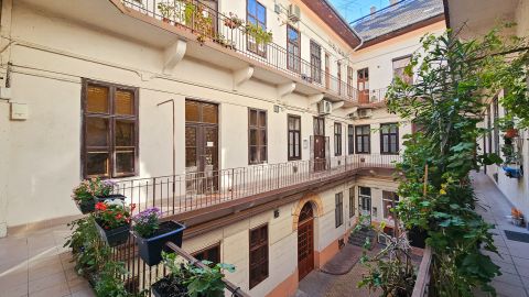 A csupán 2 emeletes épület tágas belső udvarának köszönhetően a lakás meglepően jó fényviszonyokkal rendelkezik.