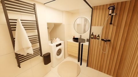 A tervezés során nagy hangsúlyt fektettek az optimális térszervezésre és a funkcionalitásra, így kényelmes, élhető lakótér kerül kialakításra.