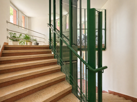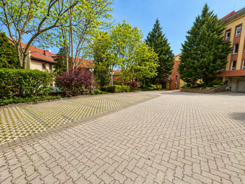 A társasház biztonságos és rendezett: napközben portaszolgálat működik, éjszaka zárt kapuk védik a lakókat, a kert gondozott.