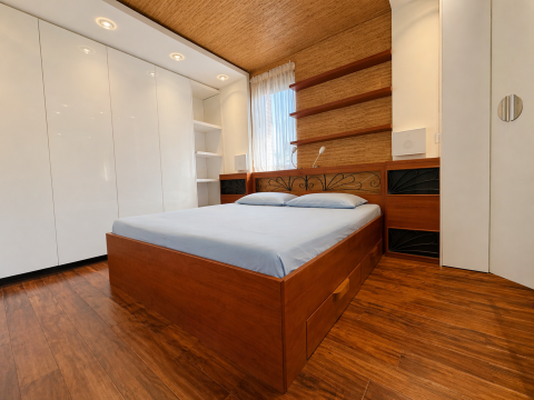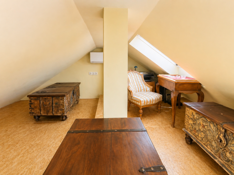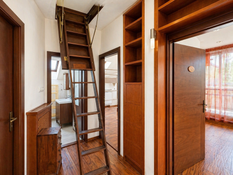 A lakás jelenleg 3 hálószobás, azonban a beépített padlástér további hálószobává vagy dolgozószobává alakítható. A belső kétszintes kialakítás tágas, jól élhető tereket biztosít.