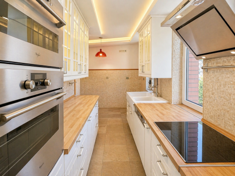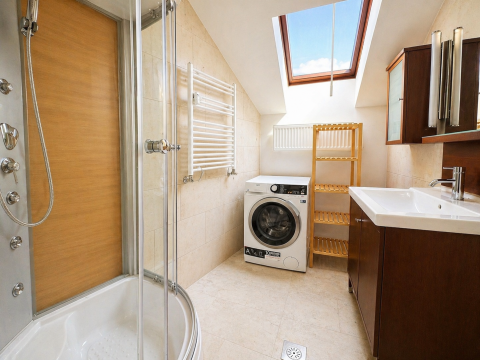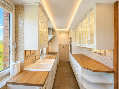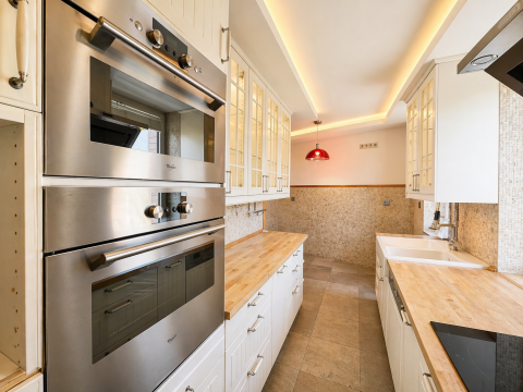 A lakásban két fürdőszoba, valamint három WC (ebből egy külön vendég WC) található. A nappali különlegessége a FA TÜZELÉSŰ KANDALLÓ, amely nemcsak hangulatot, hanem valódi otthonérzetet ad. A komfortot 4 darab klíma biztosítja, a konyha teljesen gépesített, a lakás részben bútorozott.