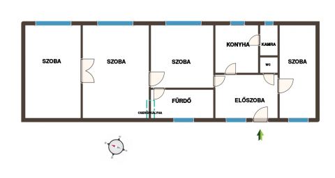 Két ablak új, hőszigetelt, redőnnyel, szúnyoghálóval. A többi nyílászáró még eredeti, fából készültek, az udvarra nézőek ráccsal védettek.