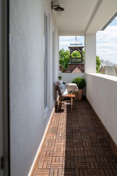 Valamint egy 8 m²-es loggia, ahonnan lélegzetelállító kilátás nyílik a Budai-hegyekre.