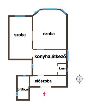 Remek elosztás, ablakos, étkező konyha, kettő külön bejáratú és össze is nyitható 23 ill 14 nm2 szobák.